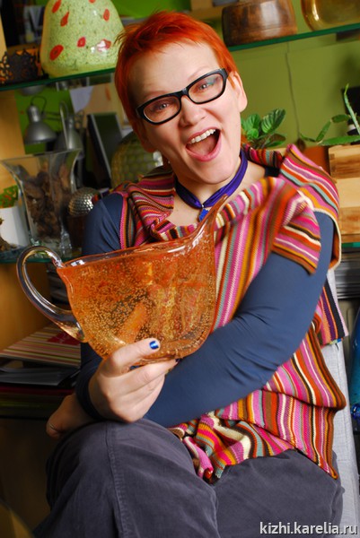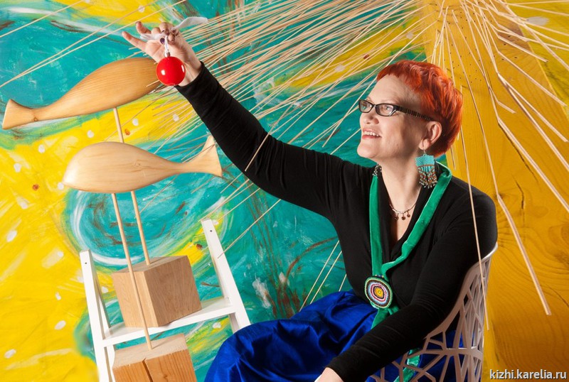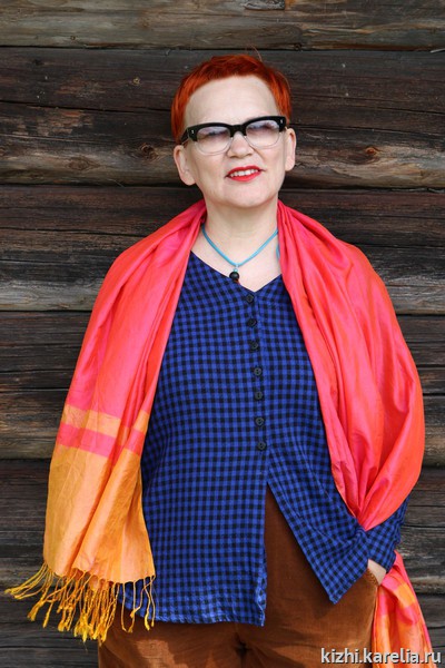 Что объединяет национальные костюмы Карелии и авторскую одежду Елены Теплицкой? Безусловно, яркий, «громкий» цвет, пестрядность и многослойность. У слова «пестрядь» два значения — это и льняная или хлопчатобумажная ткань из разноцветных ниток, обычно домотканая, и собственно пестрота, разноцветность. Когда в июне этого года Елена Теплицкая гостила на острове Кижи, она везде находила яркие краски — на вышивке заонежских полотенец, на прялках и лоскутных одеялах, в рассветах и закатах над заповедным островом. Особый интерес Елена Теплицкая проявила к народным костюмам. Встреча с фольклорным ансамблем музея «Кижи» произвела на модельера большое впечатление.