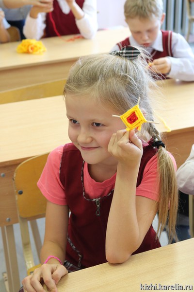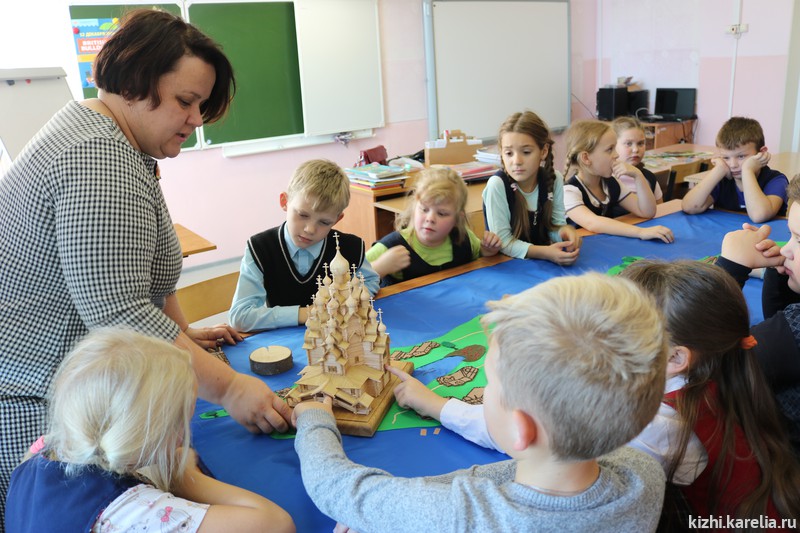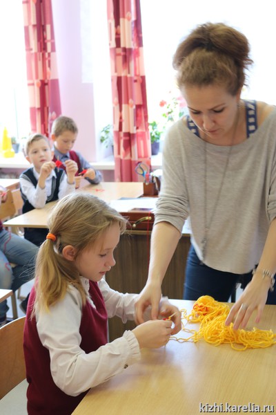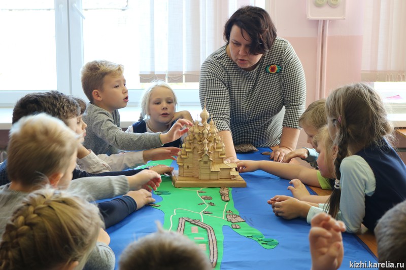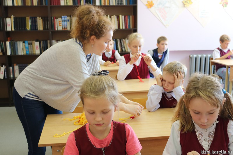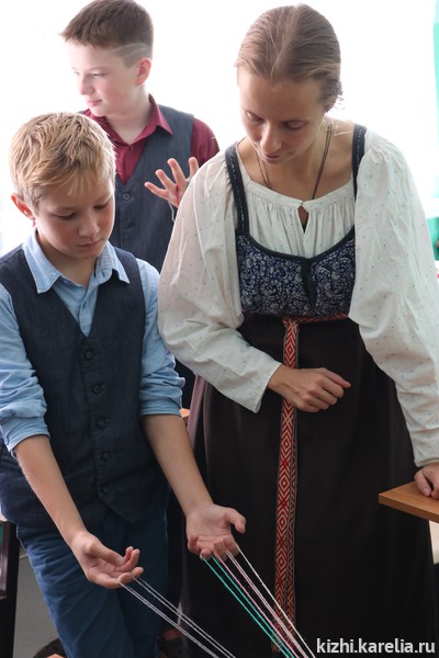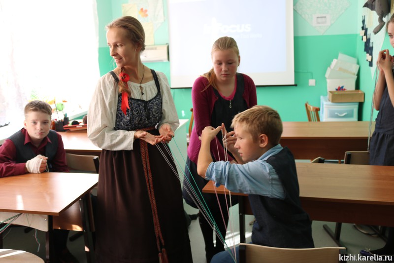 Лодка — важное понятие в жизни не только вепсов, но и заонежан. В Заонежье находится заповедный остров Кижи, о котором рассказывали сотрудники музея школьникам. Анна Исакова привезла на занятие большую интерактивную карту острова и макеты главных достопримечательностей музея — церквей и колокольни Кижского погоста. Татьяна Баранцова познакомила детей со старинными мерами и веса и предметами, которыми пользовались наши предки для измерения. Кристина Салахова провела несколько увлекательных мастер-классов по созданию оберегов. Анастасия Петухова научила школьников прясть традиционный заонежский пояс. Руководитель Детского музейного центра Марина Кочетыгова рассказала детям и взрослым о многочисленных программах и праздниках, которые проводятся на острове Кижи и в которых рыборецкая школа может принять участие. В том числе о проекте «Летняя школа на острове Кижи» и о Российском центре народного судостроения и судоходства. Большое внимание во время смены центра уделяется правилам поведения на воде, мерам безопасности, навыкам оказания первой помощи. С детьми занимаются инструкторы, мореходы, лодочники, хранители народных традиций. По итогам встречи с учителями договорились о том, что ученики рыборецкой школы примут участие в одном из проектов Детского музейного центра музея «Кижи».