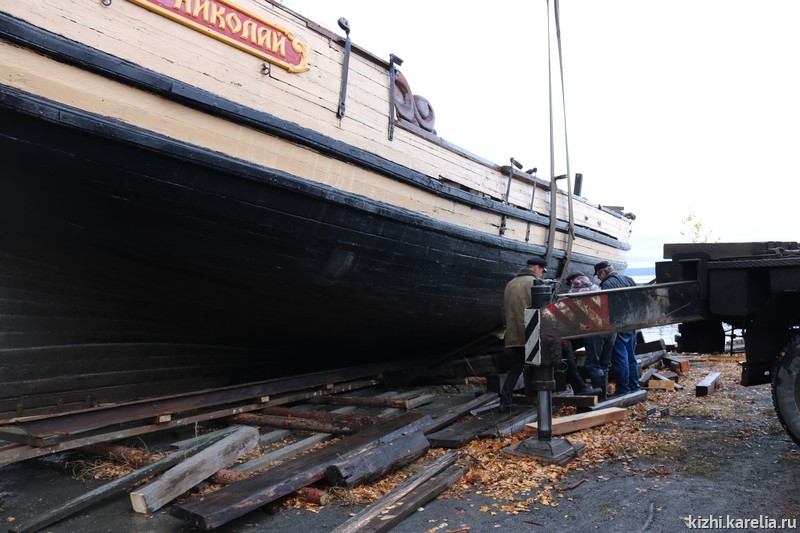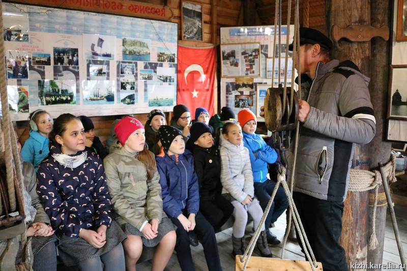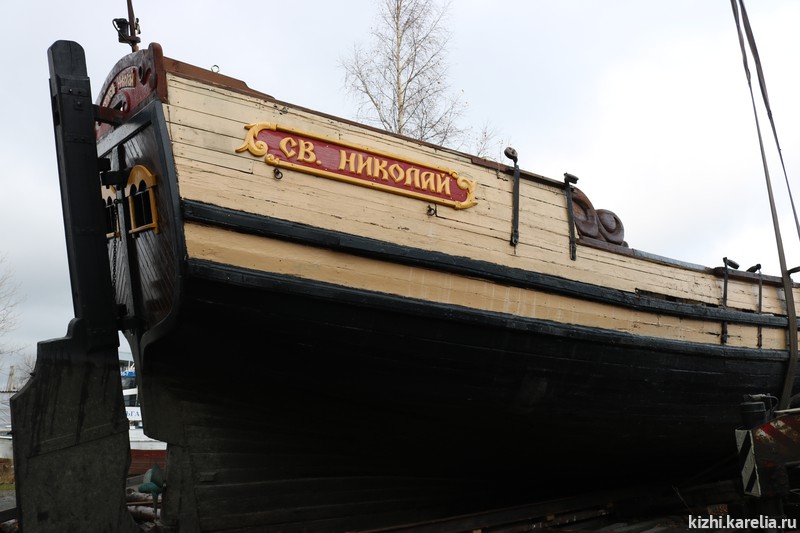 В день, когда школьники пришли на экскурсию, сотрудники музея и участники морского клуба тоже не сидели, сложа руки — они выравнивали на стропах лодью «Святитель Николай», которую недавно достали из воды для реставрации. Купеческая поморская лодья «Святитель Николай» была построена в 1990–1991 годах по канонам, близким к традиционным поморским судам. На таких судах поморы ходили в страны Скандинавии, на Грумант, к берегам Англии и в Мангазею.