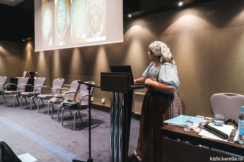 Музей «Кижи» на конференции представили специалисты Владлена Кантор и Марина Ноженко. В. Кантор представила участникам обзор фондовых коллекций тканей в музеях Карелии. М. Ноженко познакомила участников с опытом музея «Кижи» в реализации проекта, представляющего эксперимент в области этномоды — это совместный проект музея «Кижи» и известного российского дизайнера Елены Теплицкой. С 2 ноября по 9 декабря в выставочном зале музея «Кижи» на ул. Федосовой, 19 работает авторская выставка Елены Теплицкой «Моды. Пестрядь», среди экспонатов которой легко угадываются мотивы и цветовые акценты традиционных костюмов народов Карелии, а на днях в рамках акции «Ночь искусств» музеем были проведены модные показы одежды от Елены Теплицкой под названием «Кижи-кураж». Задача проекта созвучна названию конференции — и заключается в поиске аутентичного и в то же время современного дизайнерского решения в области этномоды Заонежья и Карелии.