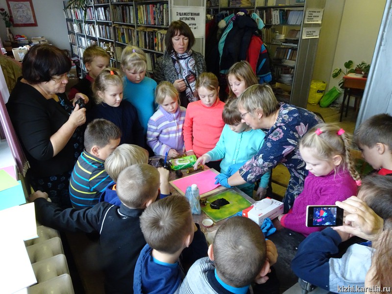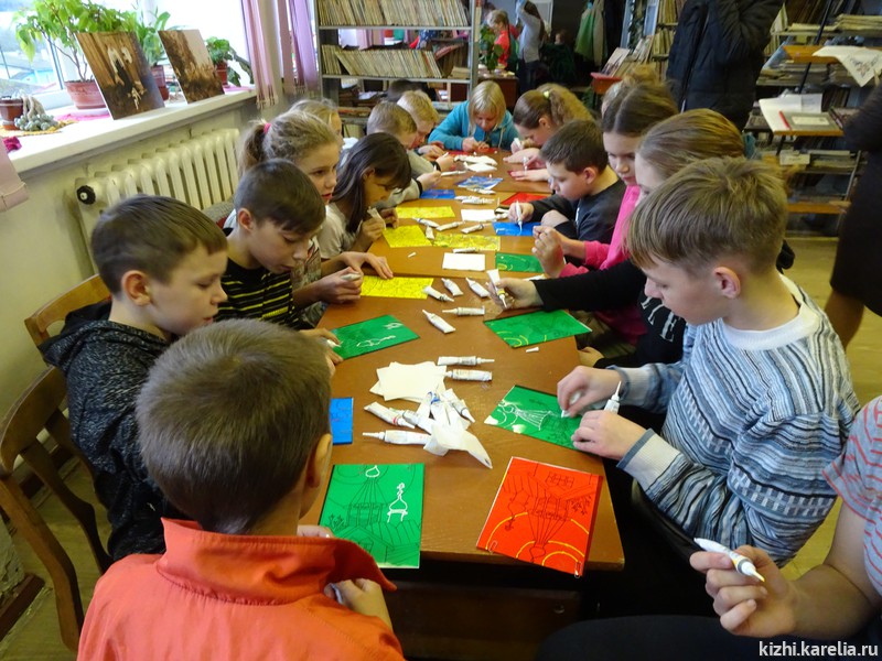Наталья Архипова — сотрудник музея «Кижи» и методист проекта стала идейным вдохновителем и помогла в создании народной выставки. На ней представлены предметы быта, тканые дорожки, редкие фотографии и документы. Для детей Толвуйской школы настоящим подарком стали мастер-классы, которые провели сотрудники музея. Галина Захарова сделала с ребятами «сувенирную» пуговицу, а также познакомила школьников с витражной техникой. Участниками мероприятия стали дети со 2 по 7 классы. Наталья Архипова провела мастер-класс по линогравюре, где дети всего за пару минут смогли сделать настоящие профессиональные иллюстрации.