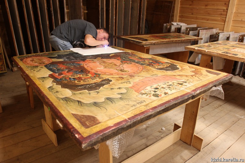 По словам реставратора высшей категории Виталия Скопина, руководителя подрядной организации «Заонежье», выполняющей реставрацию Преображенской церкви с первого дня, работы идут по графику и будут завершены в срок. Александр Любимцев подчеркнул, что почти по всем техническим вопросам специалисты музея, российские и международные эксперты пришли к единому мнению.