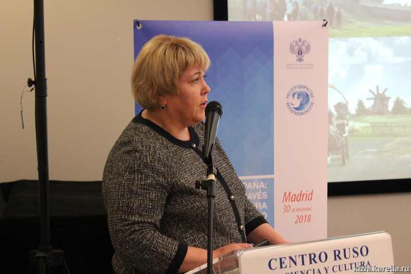 30 ноября в Мадриде, в Российском центре науки и культуры состоялась презентационная сессия российских культурных учреждений «Россия и Испания: диалог через культуру и познавательный туризм». Участие в работе сессии приняла директор музея-заповедника «Кижи» Елена Богданова.