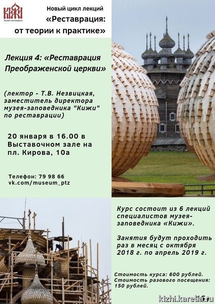 Очередное занятие посвящено вопросам реставрации церкви Преображения на о. Кижи.