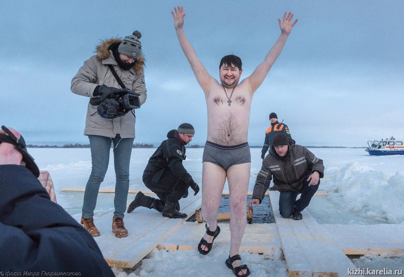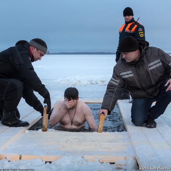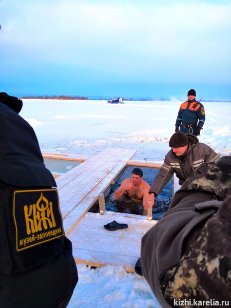 Несмотря на крещенский мороз, нырнуть в прорубь с освященной водой решились не только сотрудники музея и МЧС, но и гость острова Сергей из Краснодара. По словам Сергея, посещение Кижей и погружение в чудотворные воды Онежского озера в светлый праздник стало событием, о котором «он даже не мог мечтать». Кижи привлекают тысячи туристов со всего мира и в обычные дни. Чтобы попасть на остров в крещение, гости преодолели длинный путь на автобусе из Петрозаводска до села Великая Губа, а далее – на судне на воздушной подушке до места назначения.