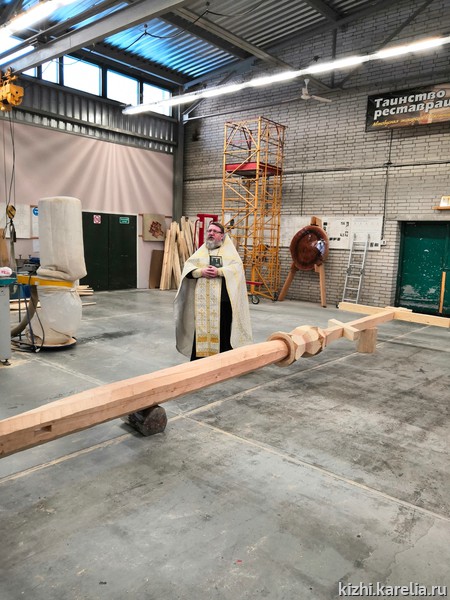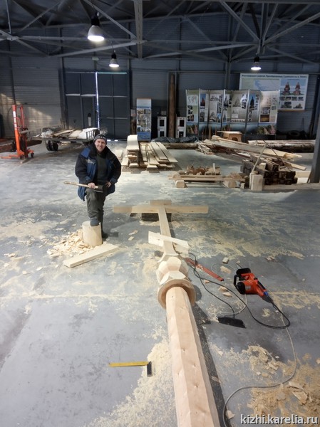 Праздник Крещения был отмечен особым событием. Отец Павел освятил крест, который вскоре увенчает центральную главку церкви Преображения Господня. Тем самым, в ближайшие месяцы храм вернёт себе силуэт, который многие десятилетия служит одним из самых узнаваемых символов нашей страны. Новый крест выполнен бригадой архитектурно-реставрационного центра «Заонежье» в плотницком центре музея.