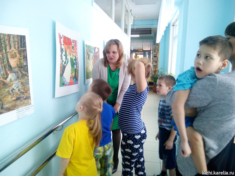 На выставке экспонируются работы победителей конкурса «Дети Карелии рисуют „Калевалу“», организованного Министерством образования и по делам молодежи РК, а также конкурсов детского музейного праздника „Кижи — мастерская детства“.