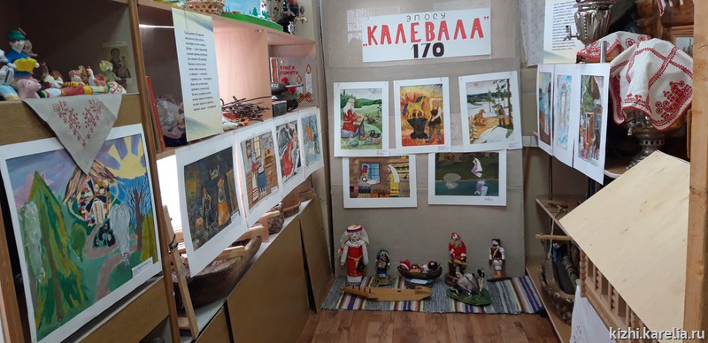 Оригинально и эмоционально дети в своих рисунках и самодельных куклах представили сюжетные композиции и образы героев «Калевалы». Здесь можно встретить мудрого Вяйнямейнена и искусного кузнеца Илмаринена, охотника Лемминкяйнена и колдунью Лоухи, невесту Похьялы и красавицу Айно. Авторами экспозиции стали юные художники и мастера из п. Юшкозеро, п. Калевала, г. Медвежьегорска, г. Суоярви, г. Петрозаводска, а также участники детской музейной студии «Кижская палитра» под руководством Светланы Петряковой.