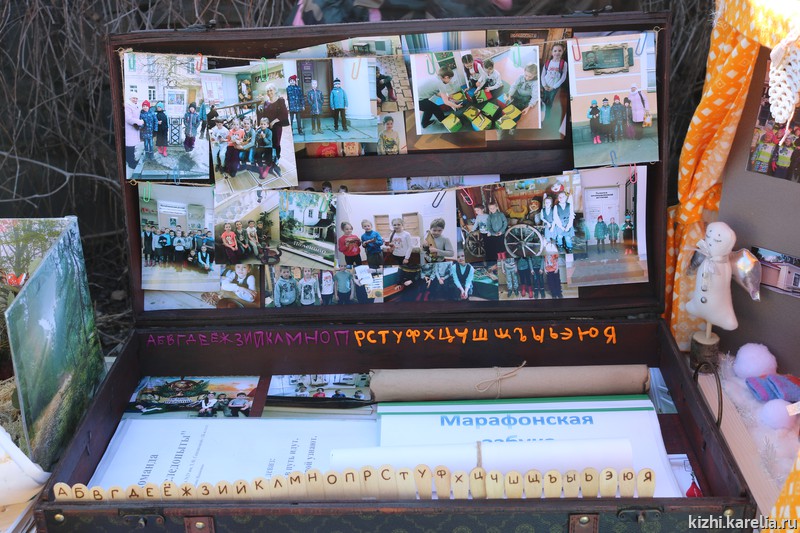 Апрель балует тёплой солнечной погодой, поэтому организаторы Музейного марафона — сотрудники музея «Кижи» пригласили всех участников и их болельщиков в уютный музейный дворик в Старом городе. Здесь же расположилась и выставка творческих отчётов — прекрасные работы школьных, дошкольных и семейных команд.