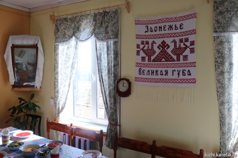 Великая Губа — очень большое поселение на берегу живописного залива Онежского озера. Жители села радушно принимали участников семинара. По-деревенски, за вкусным чаепитием с заонежскими пирогами продолжались беседы. А настоящий деревенский обед, приготовленный с любовью и теплом придал участникам делегации сил. А местный Дом Культуры поразил своей творческой мастерской и красивыми работами местных умельцев.
