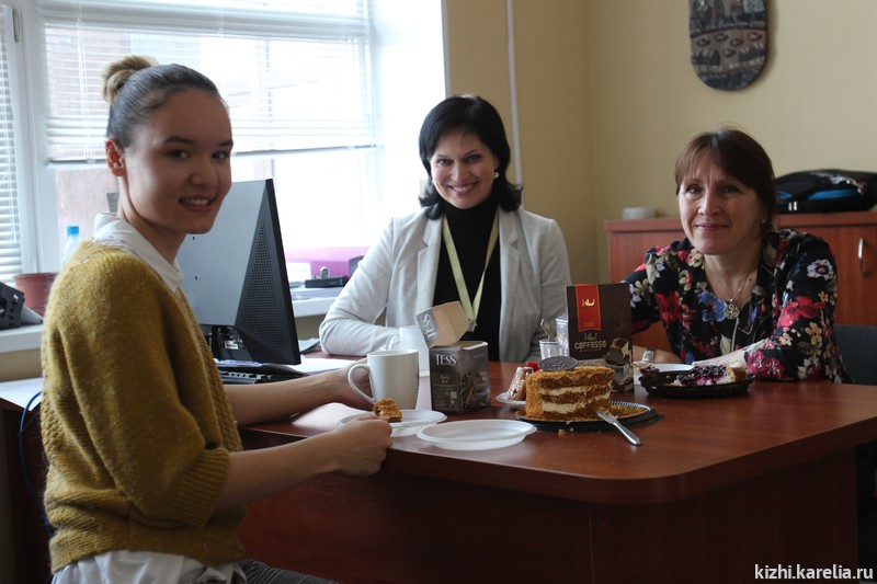 Ангелика Инкерт с большим уважением и почтением отзывается о своих наставниках, обо всех, с кем она общалась в музее «Кижи» в ходе стажировки. 8 мая, накануне Дня Победы, её пребывание в Карелии заканчивается. В рабочем кабинете — предпраздничное чаепитие с пирогами. «Как важно сохранять мир на Земле», говорит Ангелика. «Чтобы у всех людей была возможность посещать другие страны, учиться новому, встречать таких прекрасных людей, как у вас. Большое спасибо музею „Кижи“!»