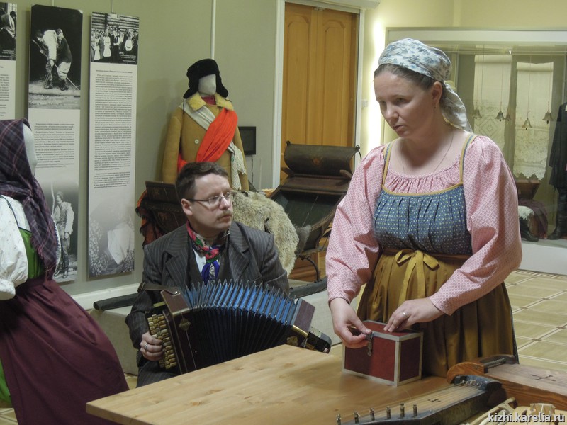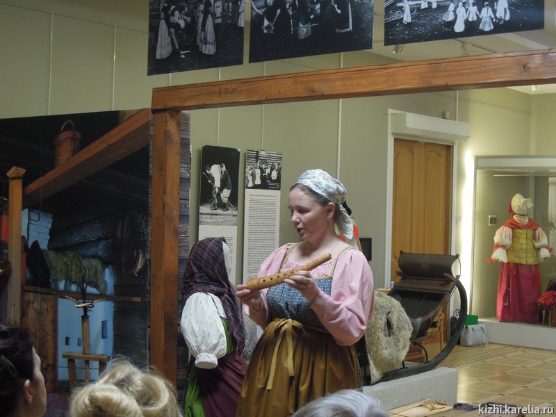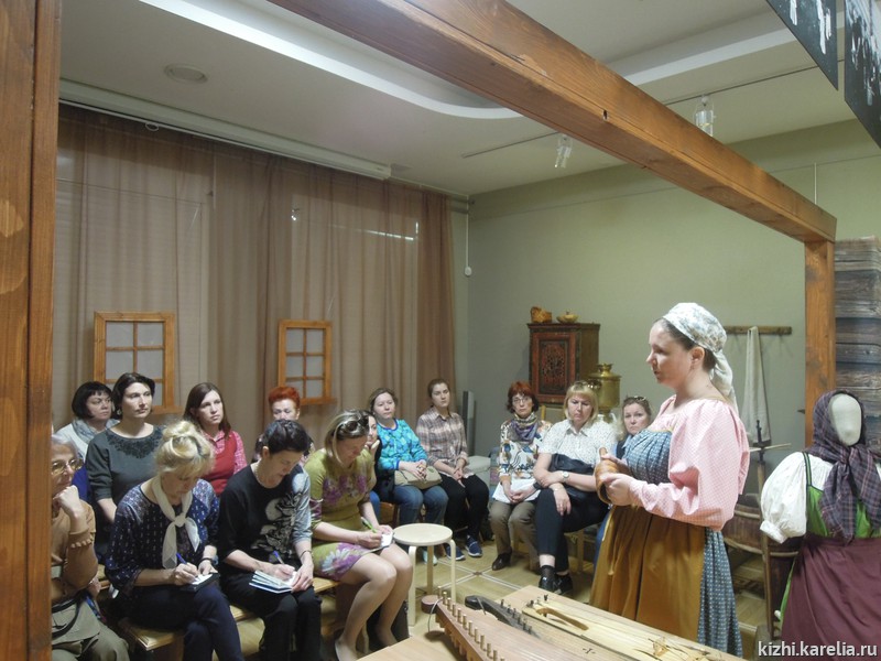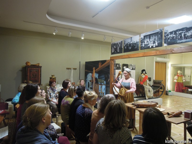 Наталья Михайлова, начальник отдела изучения и музейной презентации фольклорного наследия, познакомила музейных педагогов Петрозаводска с инструментами, бытовавшими на территории Карелии, рассказала об особенностях их изготовления, а специалист отдела Евгений Михайлов показал звучание пастушеских инструментов, кантеле, йоухикко, гармони. С молодежной музыкальной культурой Заонежья познакомила научный сотрудник Зоя Маликова, представив выставки «Молодо-зелено, погулять велено» и «Сохраняя фольклорное наследие».
