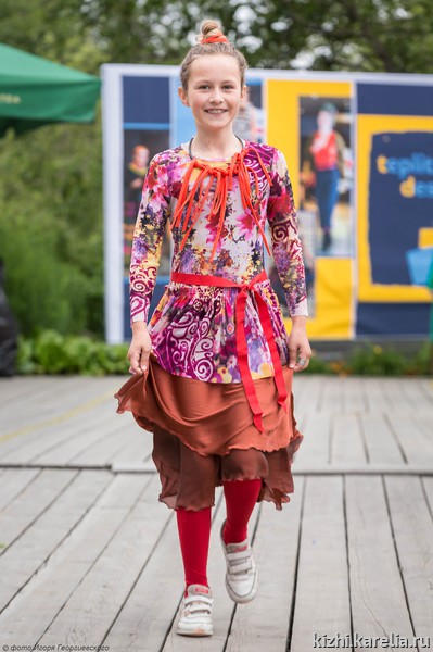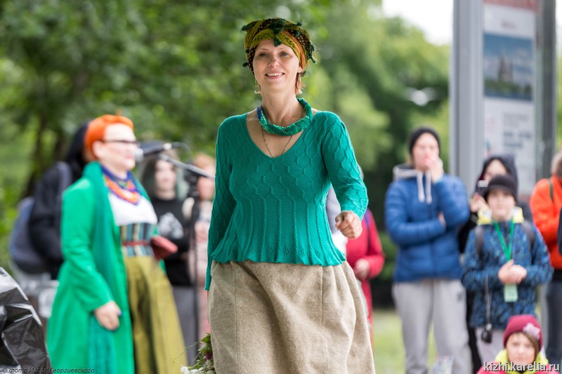 Дефиле началось с показа традиционных костюмов народов Карелии, подготовленных Мариной Гусевой, заведующей сектором изучения и демонстрации традиционных ремесел музея-заповедника «Кижи», затем зрителям предстала «Живая пестрядь» Елены Теплицкой.