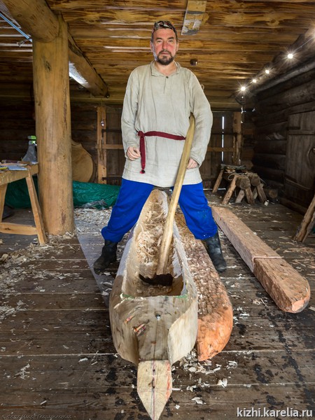 Лодка изготовлена из ствола осины по образцу из коллекции музея. Изображения таких лодок встречаются еще на Онежских петроглифах, которые датируются VI-III тысячелетием до нашей эры. До конца сезона Геннадий планирует сделать еще одну лодку. Изготовленные им лодки останутся в музее.