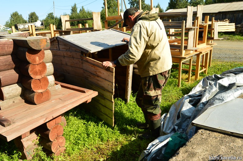 - Заменили верхний тес на крыше колодца в деревне Ямка и покрыли «биотексом».