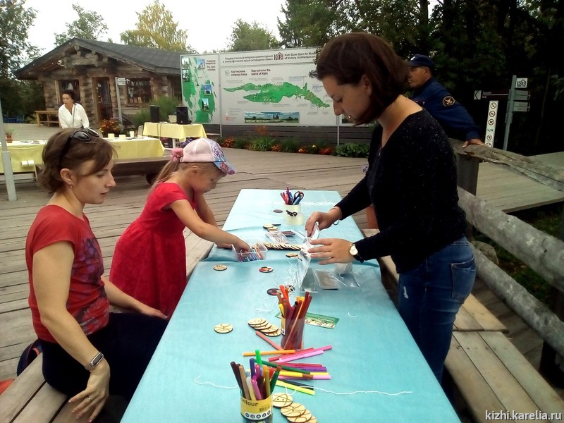 Дети и взрослые не только познакомились с основными памятниками деревянного зодчества, но и побывали на увлекательных «кижских уроках». Согласитесь, гораздо интереснее изучать историю, когда сам находишься в историческом доме XIX века! Великолепный урок музыки преподали Наталья и Евгений Михайловы, «урок в старой школе» провела Галина Леонидовна Захарова, урок древесиноведения — Роман Мартьянов, урок труда и основ плотницкого мастерства — Александр Любимцев. А ещё были незабываемые встречи со сказителем Олегом Скобелевым, кузнецом Сергеем Танана, лодкостроителем Геннадием Марковым, мастером Евгением Борисовым, резчиком по дереву Дмитрием Москиным. Анна Исакова рассказала участникам праздника о том, как раньше в Заонежье учились дети, какими перьями и чернилами писали в приходской школе на острове Кижи. На «перемене» ребята с удовольствием плясали вместе с фольклорным ансамблем музея «Кижи». Были и вкусный обед, и мастер-классы, и сувениры на память о празднике.