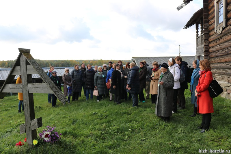 Многие «рябининцы» уже не первый раз на конференции и на острове Кижи. С большим удовольствием посетили обзорную экскурсию по основной экспозиции, поднялись на колокольню. По традиции конференции на Кижском погосте состоялось возложение цветов на могилу Трофима Григорьевича Рябинина, выдающегося сказителя русских былин, в честь которого и был назван научный форум. После экскурсии пили чай с карельскими пирогами и калитками.