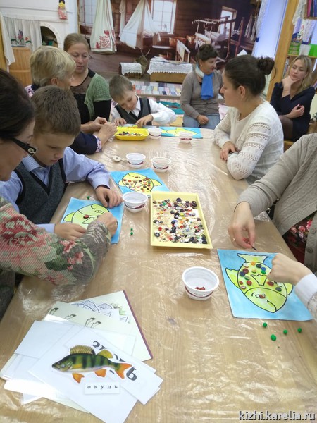 Руководитель Центра музейной инклюзии, тьютор Алла Александровна Епифанова провела для участников семинара два занятия с детьми 8–14 лет по теме «Рыба-окунь» и «Поговорим о рыбах» с использованием техник работы с пластилином и пуговицами и раскрашивания рыбок из соленого теста. Наталья Евгеньевна Медведева, методист отдела «Детский музейный центр» музея-заповедника «Кижи», показала методики работы с предметом на интерактивной экскурсии по выставке «Кижская азбука». И занятия, и экскурсия вызвали живой интерес у участников семинара, музейные педагоги старались помочь детям выполнить задания, включались вместе с ними в игру, помогали подобрать материалы для выполнения творческих работ. В аудиториях постоянно звучали аплодисменты, которыми взрослые поддерживали детей.