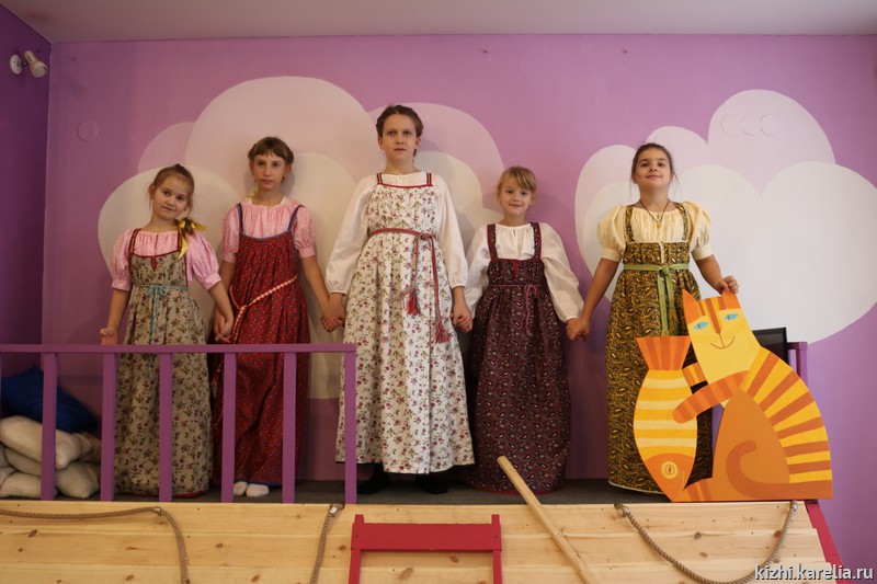 В последний день каникул ребята примеряли заонежский гардероб. Девочки оделись в сарафаны и станушки, а мальчики в рубашки-косоворотки. Каникулы в музее завершились веселой фотосессией!