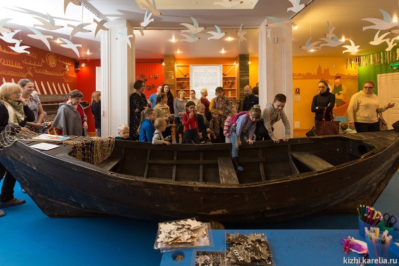 - Экскурсия по выставке «Всё дело в лодке». На выставке можно узнать, как выглядели самые древние лодки, изображения которых сохранились в наскальных рисунках, можно ли перевезти корову с одного острова на другой в лодке, почему раньше лодки «шили», а не строили. Юные посетители смогут забраться в лодку и поиграть в игры, выполнить задания, сложить паззлы, отгадать загадки, нарисовать и выпустить в озеро свою рыбку, которая исполняет желания!