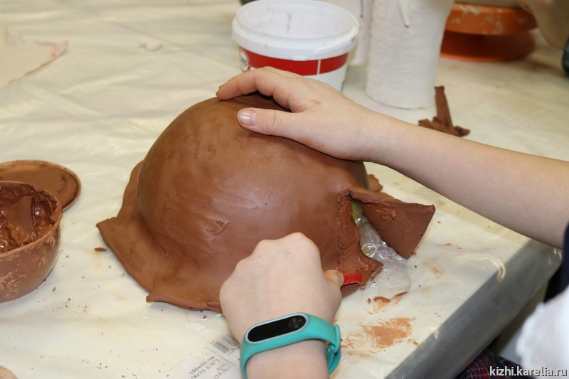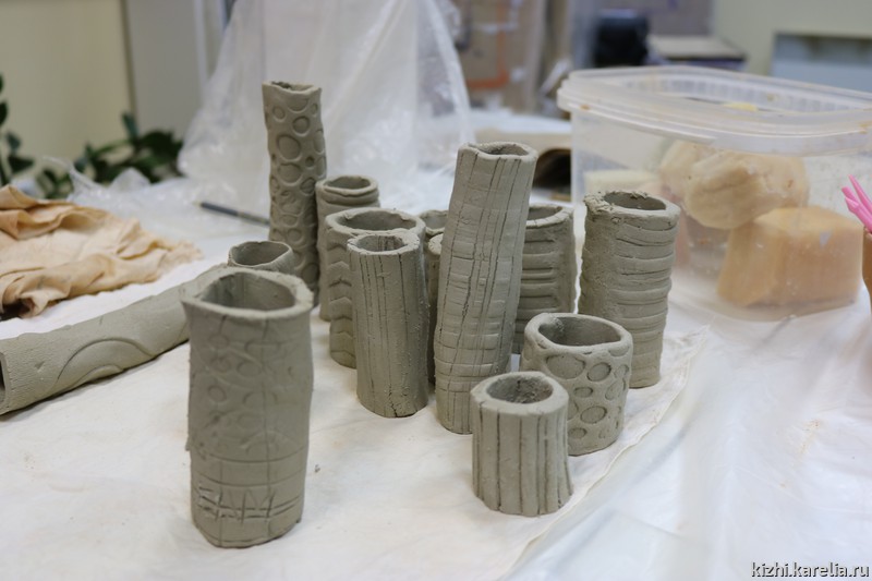 Работы детей выполнены из шамотной глины, которая является основой для малых архитектурных форм, устойчивых к погодным условиям. Поэтому глиняные светильники пригодны к экспонированию на открытом воздухе даже в нашу дождливую зиму.