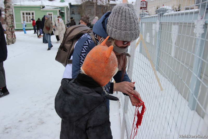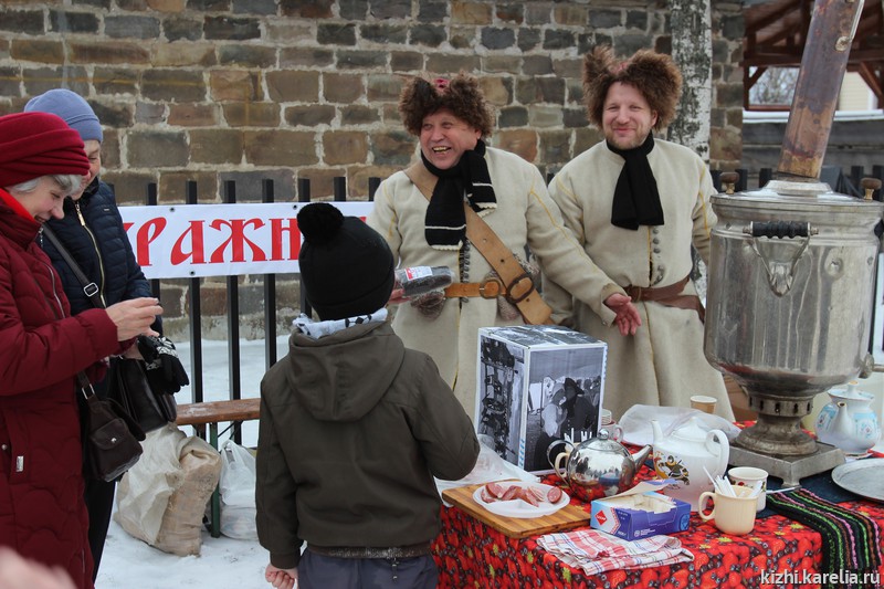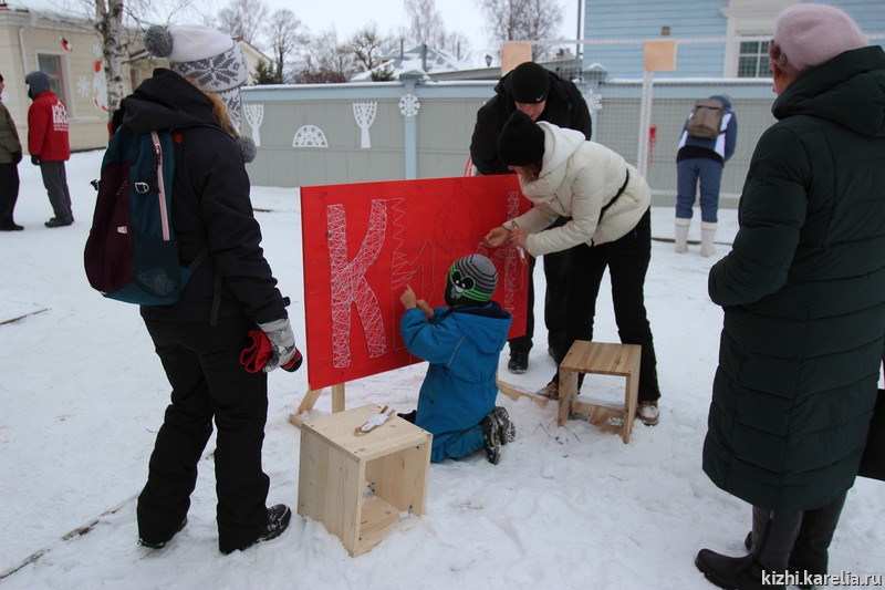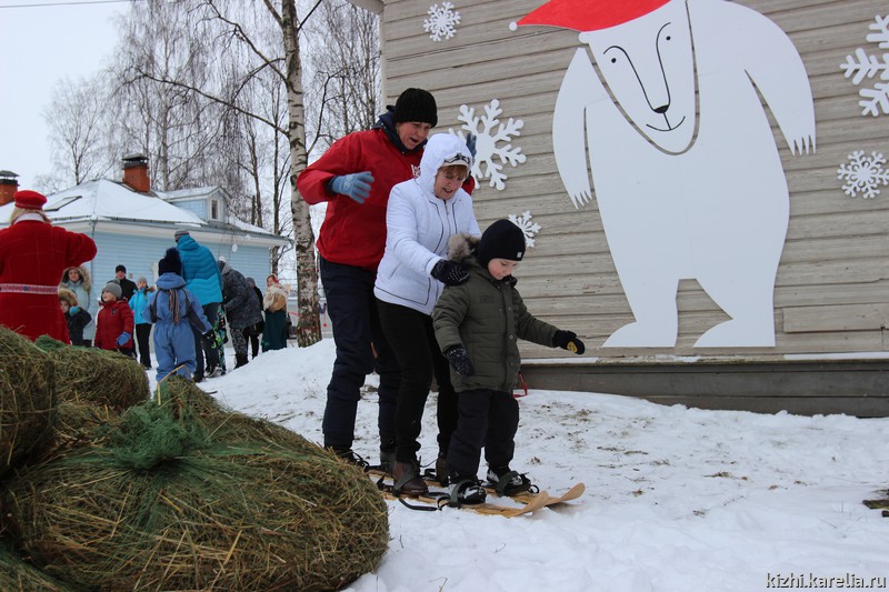 Гостей праздника ждал эко-инструктор «Узоры заонежских стожков», игра-викторина «Следу на снегу», интерактивные инсталляции «Снежные барсы и птицы-павы». В гостях у музея «Кижи» был знаменитый карельский Морозец Паккайне. Игровую программу подготовил Олонецкий центр творчества и досуга. Мастерицы сектора сохранения, изучения и демонстрации традиционных ремесел проводили бесплатные мастер-классы и демонстрации: «Белым по белому» (вышивка по металлической сетке), «Белым по красному» (вышивка фирменного знака музея-заповедника «Кижи»), «Красным по белому» (солярные знаки на обруче). Кто озяб и нагулял аппетит — мог угоститься в арт-кафе «Олония».