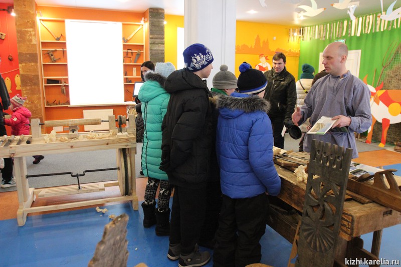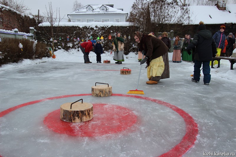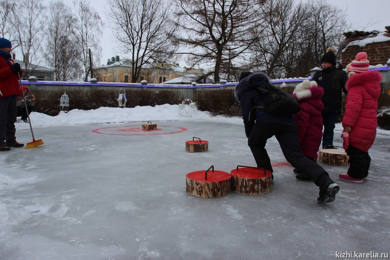 Большой популярностью пользовалась площадка «Зимняя мозаика в музейном дворике». Здесь дети и взрослые с азартом принимали участие в развлекательном состязании «Кижикёрлинг», угощались чаем из «кижского самовара», любовались выставкой по итогам конкурса «Свет волшебных фонарей». А в студии «Кижской палитры» мастер Светлана Петрякова учила всех желающих создавать уникальные «Глиняные узоры».