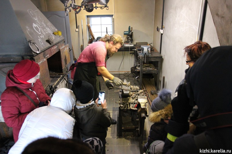 Рядом с музейной кузницей расположилась площадка «Кованые узоры» — выставка изделий элементов художественной ковки от участников кижского фестиваля «Гвоздь», экспозиция «Каминные узоры» и угощение от Печного центра «Ками», «Ратные разговоры за самоваром» от военно-исторического клуба «Стражник». А в самой кузнице — очень популярные мастер-классы от музейного кузнеца Сергея Тананы.