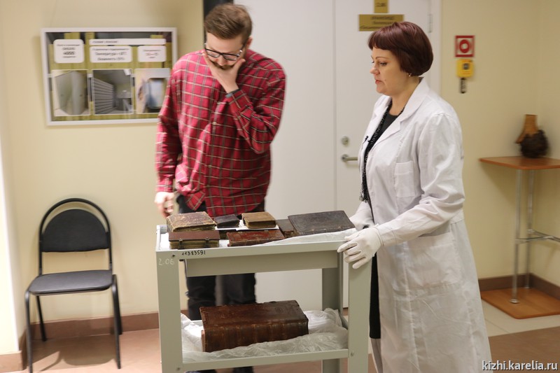 Куратор выставок, ведущий научный сотрудник музея «Кижи» Марина Бабалык рассказала корреспонденту о кропотливой подготовке выставок и конференции, об уникальных экспонатах, часть которых уже находится в музее, а часть привезёт коллекционер Максим Максимов из Санкт-Петербурга в начале следующей недели. За два года знакомства и сотрудничества с коллекционером музей «Кижи» значительно пополнил свою коллекцию письменных источников — приобрёл около 30 редких старинных книг, в том числе XVII века.