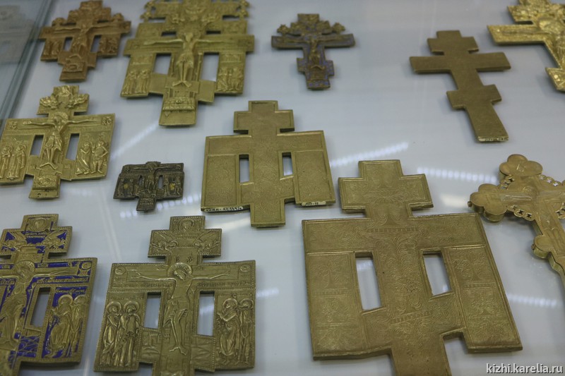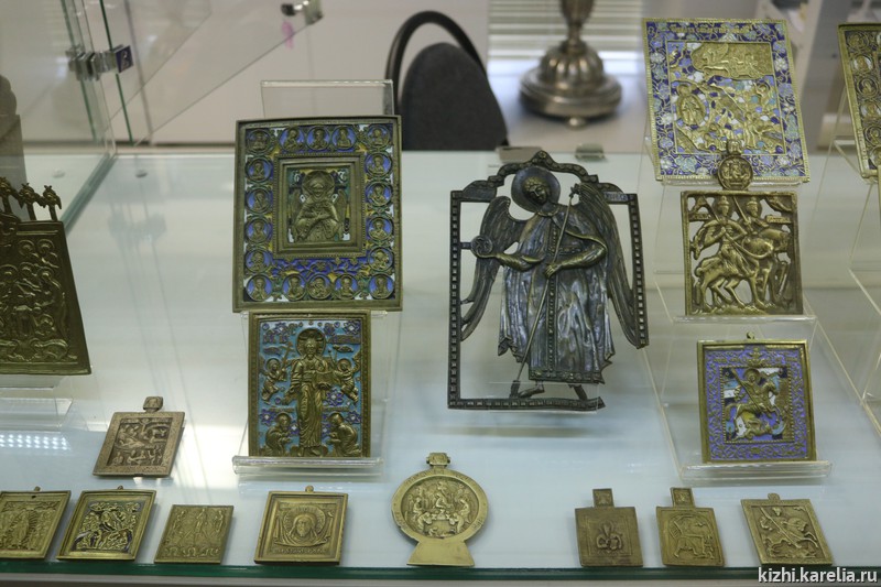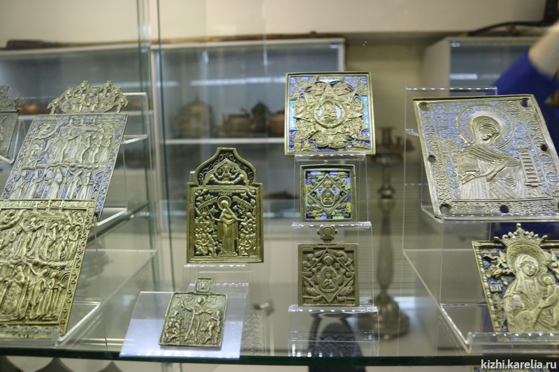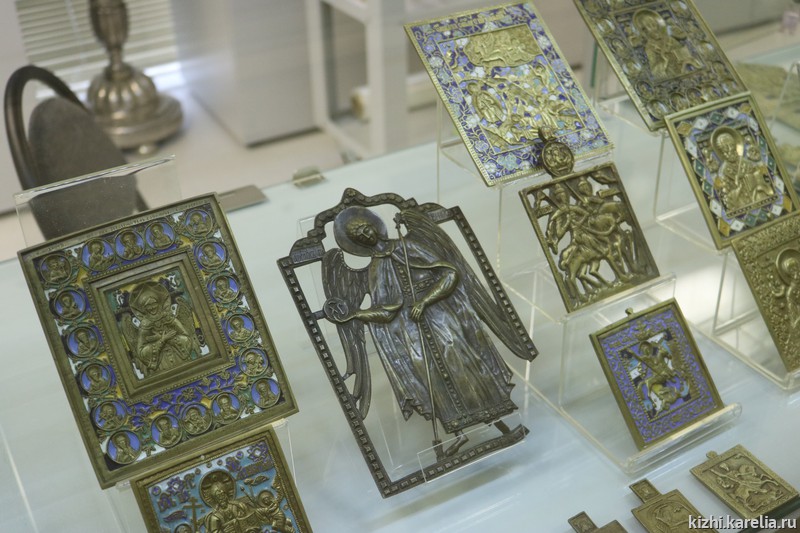 На выставках также будут представлены предметы из коллекции меднолитой пластики. В Карелии, как и во всей Руси, были широко распространены миниатюрные меднолитые иконы, складни, кресты. С течением времени изделия мастеров-литейщиков Севера объединили общим названием «поморское литье». Однако наиболее известный центр их производства — Выговское старообрядческое общежительство. В литых миниатюрах мы видим стилевое единство графики и орнаментики, композиционную продуманность, своеобразную трактовку канонических сюжетов. Коллекция меднолитой пластики музея-заповедника «Кижи» позволяет проследить развитие искусства старообрядческих мастерских, начиная с ранних этапов существования киновии.