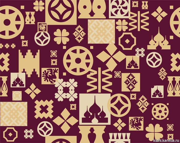 Для новой коллекции текстильных изделий использованы узнаваемые элементы кижской деревянной резьбы. Паттерн в бордовых оттенках (красный на Руси — цвет праздника), выполнен в цвете «золото» (золото — символ богатства и благополучия), лаконичный, чёткий и понятный орнамент.