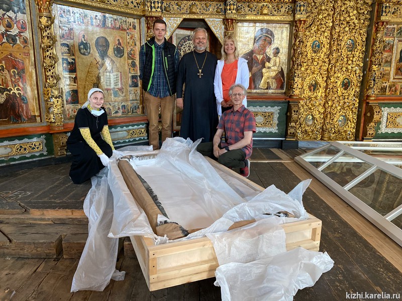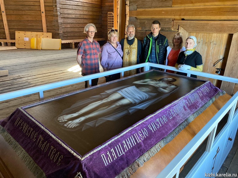 В церковь Преображения Господня на острове Кижи вернулась Плащаница начала XIX века