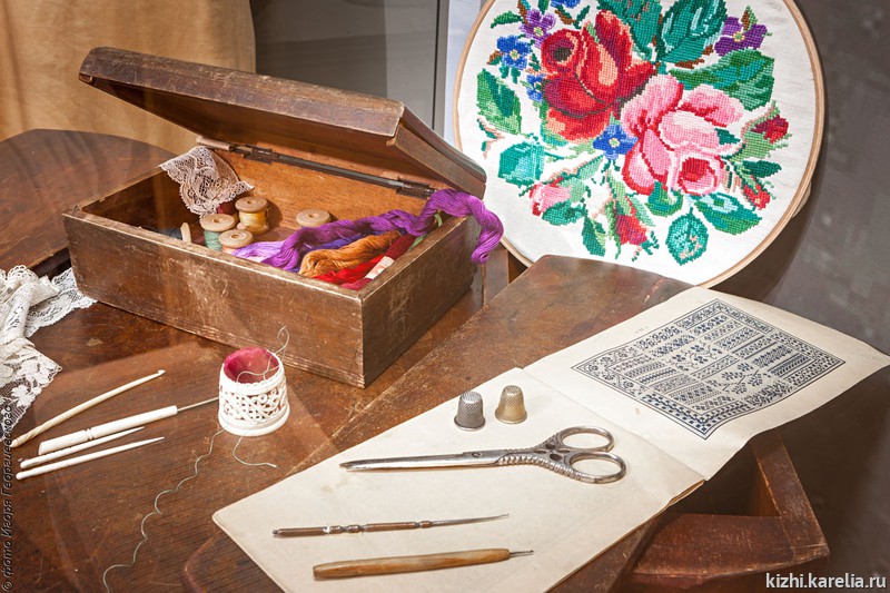 Уже на протяжении 26 лет в музее-заповеднике «Кижи» действует программа «Ожившая экспозиция». Кижские мастера владеют множеством техник вышивания, изготавливая реплики музейных предметов, которые можно видеть в интерьерах крестьянских изб и на различных выставках. Секретами своего искусства они делятся с посетителями музея.
