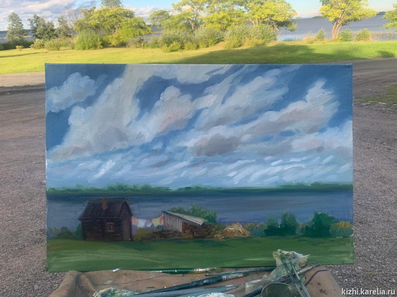 По итогам 8 дней в историческом доме Ананьева в деревне Ямка открылась выставка чудесных графических и живописных работ, посвященных памятникам и ландшафтам острова Кижи.