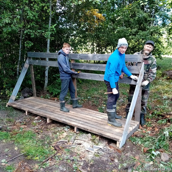 В течение недели, несмотря на непогоду, волонтеры проделали большую работу: укрепили береговую линию исторической деревни Ямка. Убрали несанкционированные свалки на островах в Кижских шхерах. Поработали на благоустройстве туристической площадки в деревне Оятевщина — самая близкая материковая точка к острову Кижи.