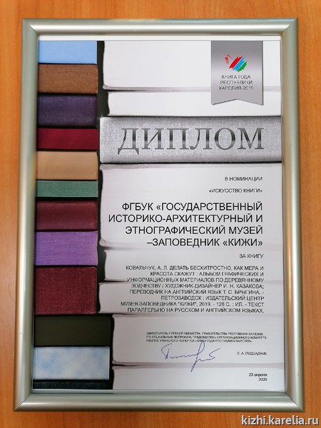 В номинации «Искусство книги» лауреатом стал альбом графических и информационных материалов по деревянному зодчеству «Делать бесхитростно, как мера и красота скажут» издательского центра музея-заповедника «Кижи».