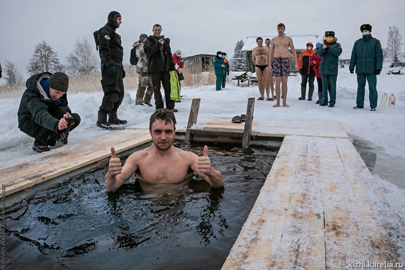 Настоятель Кижского прихода отец Павел совершил чин освещения воды, сотрудники музея окунулись в иордань, гости острова набрали освященной воды. Всех ждали горячий чай из самовара, кижская каша, выпечка и сладости.