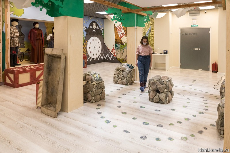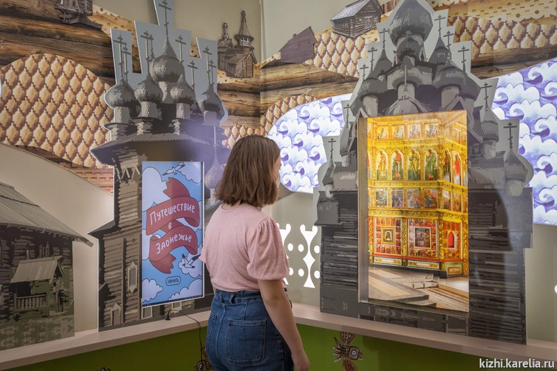 - На выставке с помощью современных мультимедийных средств вы узнаете о памятниках острова Кижи и Заонежья, о жизни крестьянской семьи, о старинных ремёслах. В игре «Проживи год на острове Кижи», выбрав себе персонажа, можно познакомиться с крестьянским домом, традиционными орудиями труда и предметами, которые окружали человека 200 лет назад. В игре «Путешествие в Заонежье» вы проследите вехи истории уникального края. На выставке можно услышать старинные сказки, былины и песни, посмотреть мультфильм «Кижские истории», научиться различать птиц и животных по голосам, заглянуть в окна заонежского дома и в отреставрированную Преображенскую церковь.