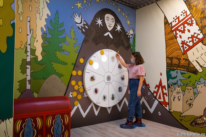 На выставке с помощью современных мультимедийных средств вы многое узнаете о памятниках острова Кижи и Заонежья, о жизни крестьянской семьи, о старинных ремёслах. В игре «Проживи год на острове Кижи», выбрав себе персонажа, можно познакомиться с крестьянским домом, традиционными орудиями труда и предметами, которые окружали человека 200 лет назад. В игре «Путешествие в Заонежье» вы проследите вехи истории уникального края. На выставке можно услышать старинные сказки, былины и песни, посмотреть мультфильм «Кижские истории», научиться различать птиц и животных по голосам, заглянуть в окна заонежского дома и в отреставрированную Преображенскую церковь.