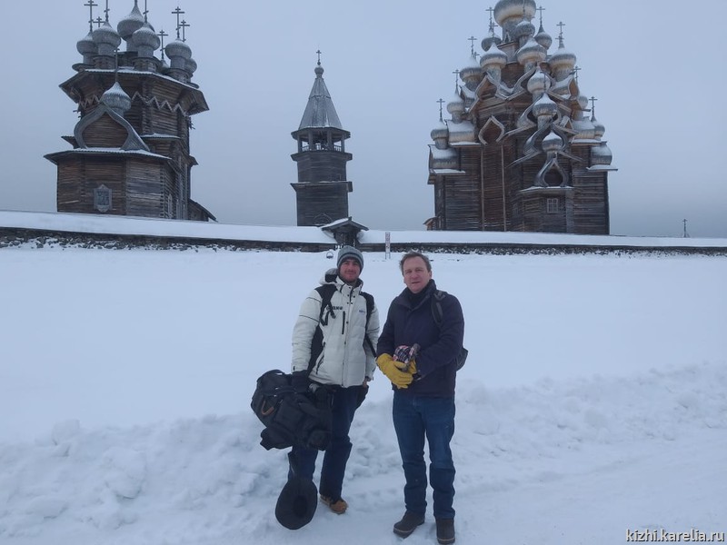 Журналист Марк Де Шевени впервые в России, а оператор Бишанте Акала уже приезжал на Чемпионат мира по футболу. Оба давно мечтали побывать на Севере - в Кижах. Говорят, что для французов Россия ассоциируется с суровым климатом и куполами. Они бы хотели показать своим зрителям самые красивые из них – фактурные купола деревянных храмов. Для французов это такая же достопримечательность, как Мон-Сен-Мишель во Франции.