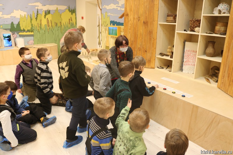 Это настоящее приключение! Все начинается с экскурсии по выставке «Земля KižiMua» и рассказа о родной земле — Карелии, полной сказочных историй. Здесь можно заглянуть в сундук с петроглифами, отгадать загадки о занятиях жителей волшебной страны, встретить лося и узнать, когда и почему он сбрасывает рога, послушать, как разговаривают лесные жители — медведь и волк.