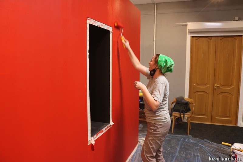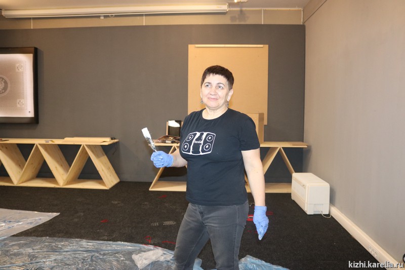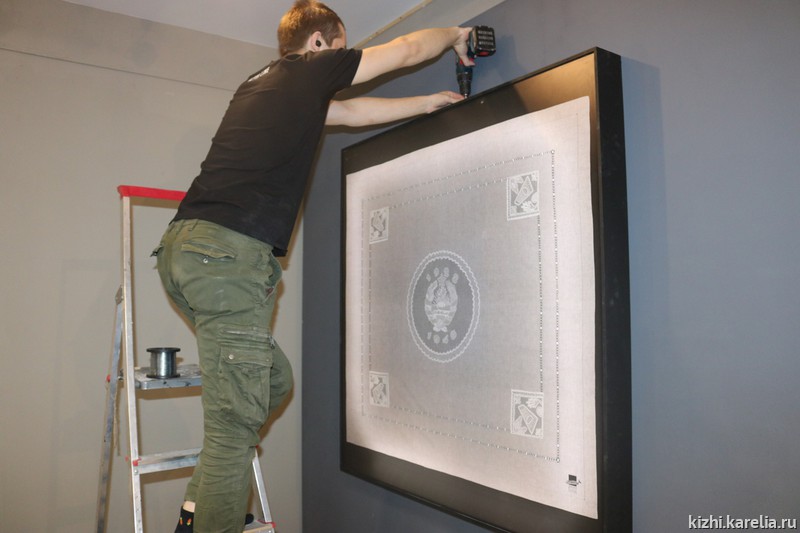 Идет монтаж новой выставки «Белее снега, краснее солнца», посвященной заонежской вышивке