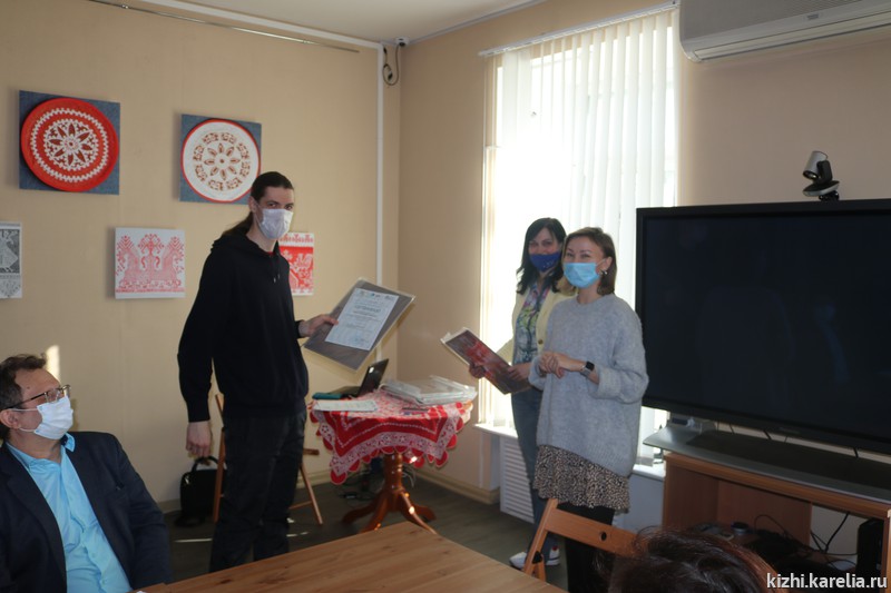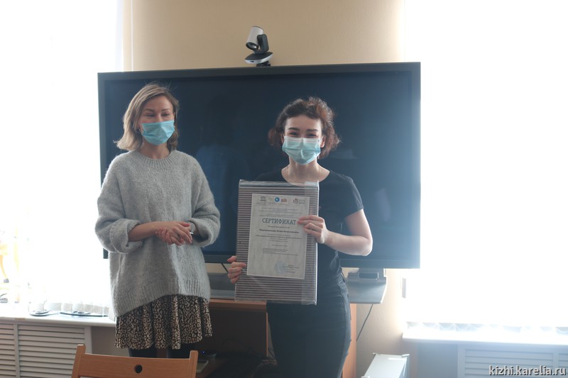 После походных условий острова Кижи, сняв рабочую спецодежду, обновлённые и непривычно городские они встретились в визит-центре музея «Кижи», чтобы завершить десятидневный курс повышения квалификации по реставрации исторических деревянных построек на базе Всероссийского центра деревянного зодчества им. В.С.Рахманова.