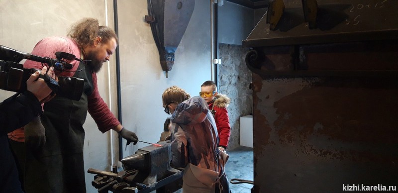 Сейчас монтируется ролик про кузнечное мастерство. Его герои — учащиеся петрозаводских школ Настя и Глеб — узнают секреты ремесла у кузнеца, сотрудника музея «Кижи», Сергея Тананы.