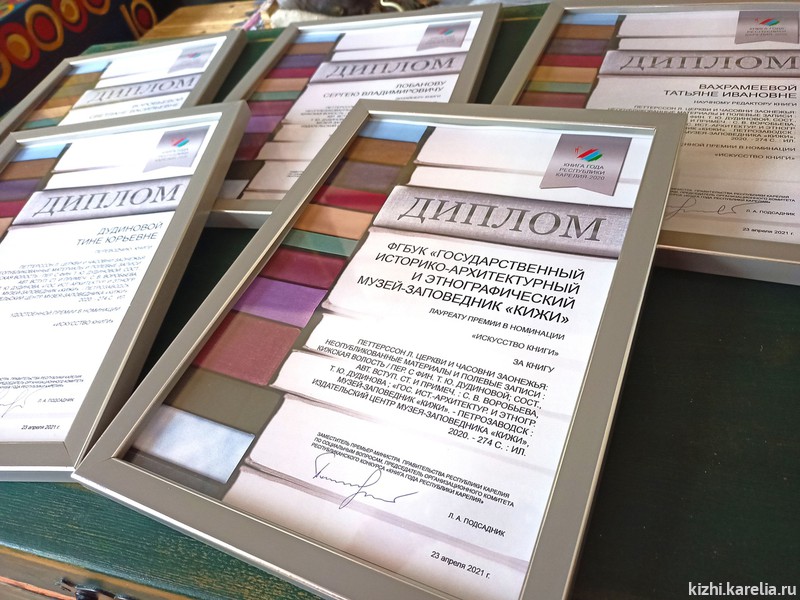 23 апреля в Национальной библиотеке Карелии состоялась торжественная церемония награждения победителей конкурса «Книга года Республики Карелия — 2020». Музей «Кижи» получил диплом в номинации «Искусство книги» за книгу Ларса Петтерссона «Церкви и часовни Заонежья: Кижская волость».