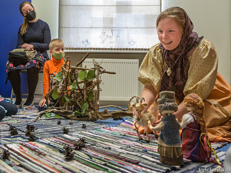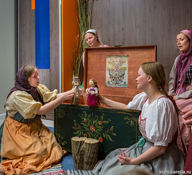 Театральное кукольное представление в исполнении фольклорного ансамбля музея «Кижи» «Были-небылицы» – это история о силах добра и зла, о семейном укладе и важности родительских заветов, переплетенная с народными песнями, поверьями, сказками. Актеры, куклы и зрители на время представления создают единый дружный круг, вместе участвуют в завораживающем представлении. Это спектакль без сцены, очень уютный и камерный.