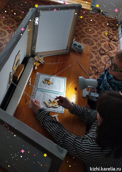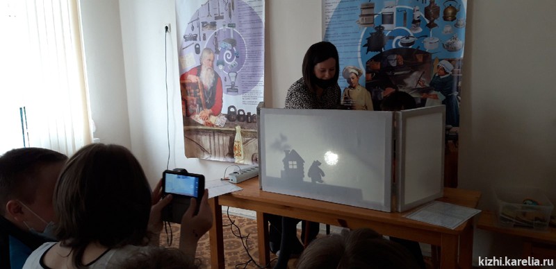 Дети и взрослые вместе участвовали в теневом театре и разыгрывали сценки. Среди героев сказки оказались мышка — рибуша (одетая в старое), лягуха — лепестинья (одетая в цветные лоскуты) и косой — полохало (как пугало).