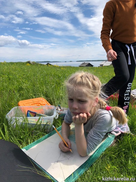 В это лето на остров приехали и младшие школьники, которые впервые на острове Кижи, и старшеклассники, которые уже здесь бывали. Пленэр для тех и других — это подведение итогов занятий в течение года в студии «Кижская палитра» при Детском музейном центре и открытие новых творческих горизонтов.