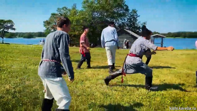 Сейчас, как и полтора века назад, в схватке за кижские тони сошлись мужики Кижского и Сенногубского приходов, роли которых исполнили сотрудники музея «Кижи», представители Российской федерации килы и бойцы Росгвардии.