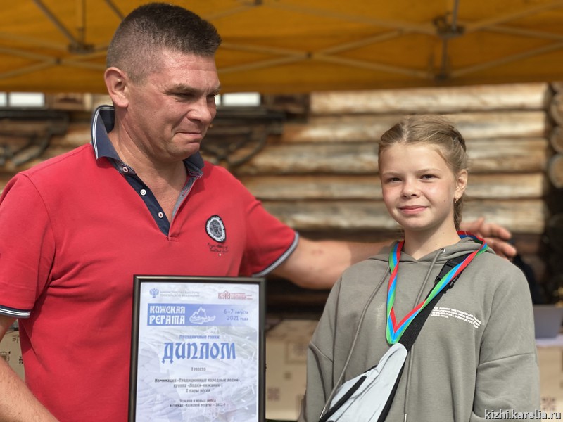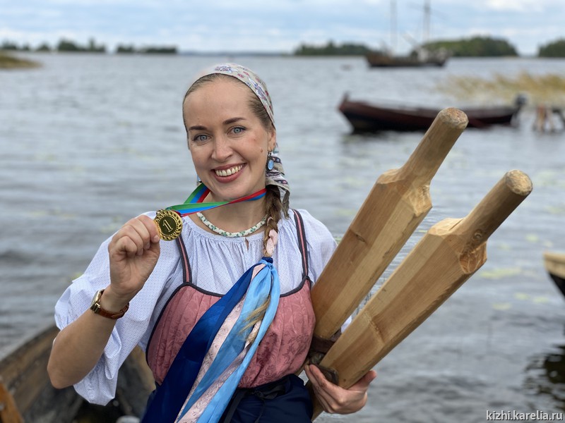 В категории «Лодки-кижанки (одна пара весел)» победила Марина Ноженко (поселок Реставраторов), на втором месте — Салават Сейбогатов (Санкт-Петербург, выступал за команду деревни Сычи, на Онеге впервые), третий — Александр Кирьянов (деревня Шлямино, старейший участник регаты).